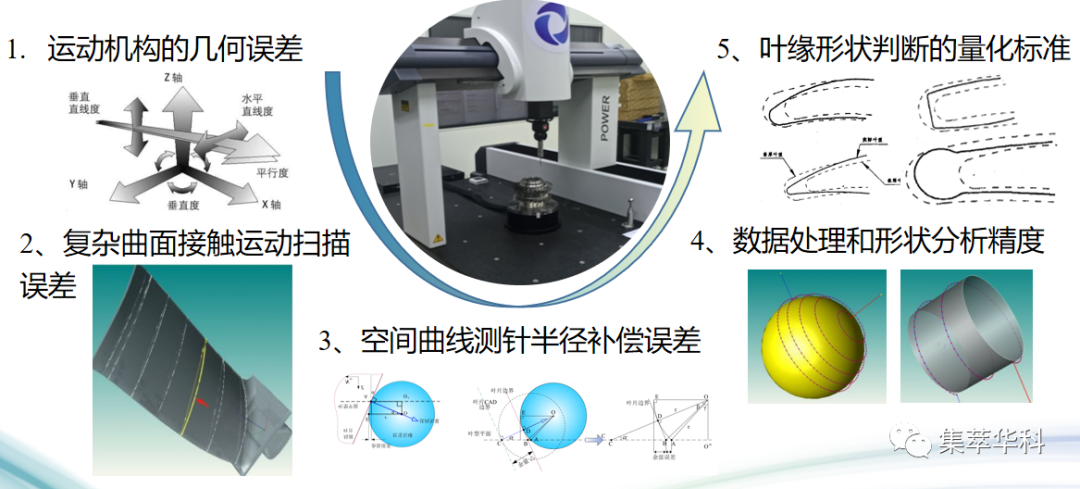 精度是測量機的基石,標準化是可靠性保證的基礎。江蘇集萃華科Power測量機集成自主開(kāi)發(fā)的“準正”控制器和DAYUMETRIC測量軟件,突破運動(dòng)機構幾何誤差、復雜曲面接觸運動(dòng)掃描誤差、空間曲線(xiàn)測針半徑補償誤差、數據處理和形狀分析精度和葉緣形狀判斷量化標準五大關(guān)鍵技術(shù),搭建葉片/葉盤(pán)高效高精測量的完整解決方案。