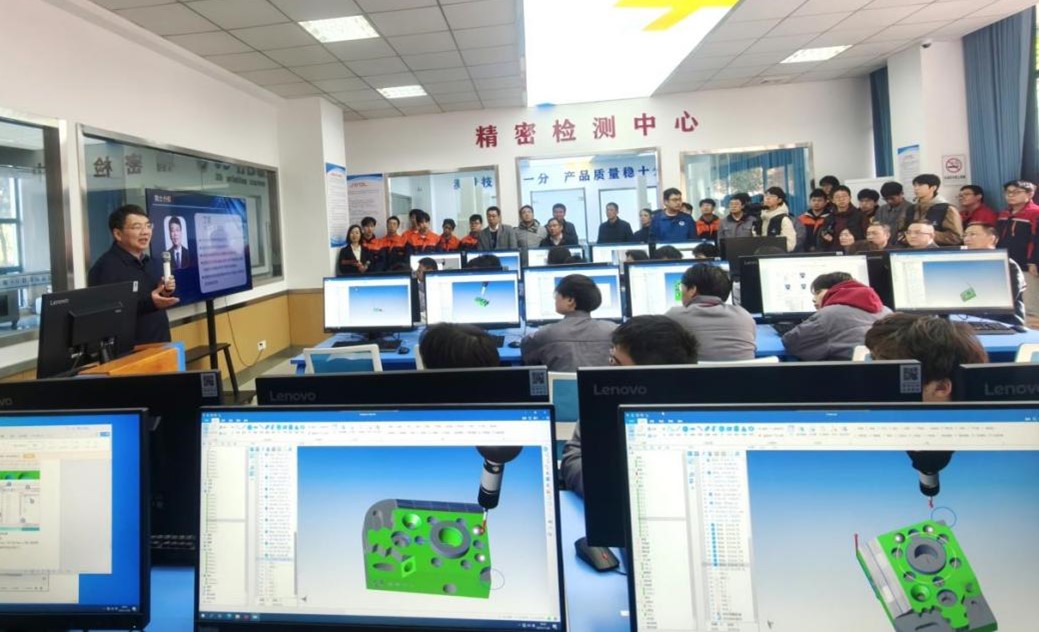 本次實(shí)訓基地獲得無(wú)錫市教育局專(zhuān)項資金支持,同時(shí)創(chuàng )新中心按照省工信廳、市工信局對省制造業(yè)中心的指導精神,提供多臺設備與技術(shù)資源共享,可容納40名學(xué)生同步開(kāi)展虛擬仿真與設備操作實(shí)訓。創(chuàng )新中心結合職校培養規律與無(wú)錫產(chǎn)業(yè)特點(diǎn),開(kāi)發(fā)“理實(shí)一體、虛實(shí)結合”的培訓課程體系,融入航空發(fā)動(dòng)機、汽車(chē)零部件等本地優(yōu)勢產(chǎn)業(yè)測量案例,并對授課教師開(kāi)展專(zhuān)項培訓與取證上崗;貑⒂靡詠(lái),已完成兩個(gè)班級全時(shí)連貫培訓及嚴格考評認證,預計每年將有近百名優(yōu)秀學(xué)生實(shí)訓取證,具備精密測量工程實(shí)操能力。