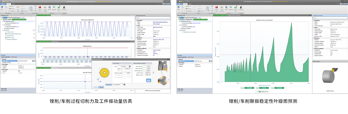 · 適配不同結構形式的鏜刀與車(chē)刀,并預測對應加工過(guò)程的顫振穩定性;